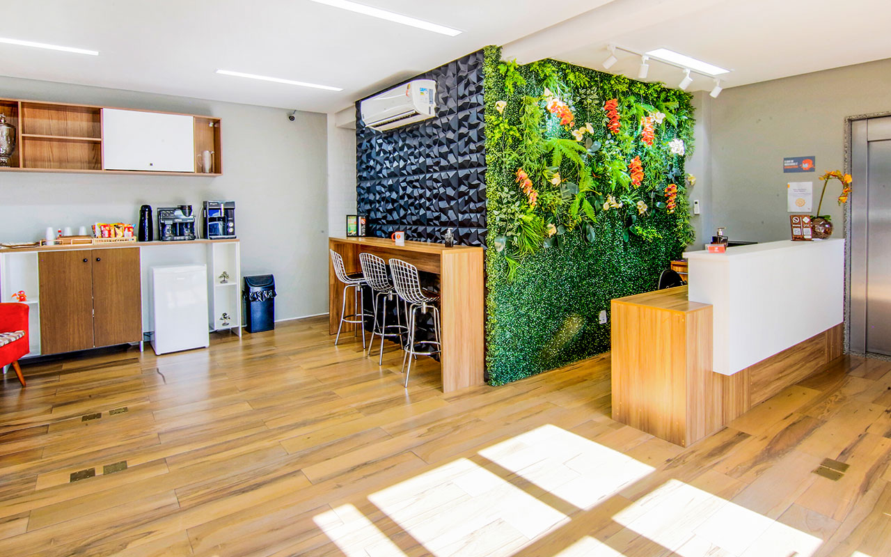 Internet fibra dedicada, firewall, recepção profissional e ambiente pronto para produtividade.