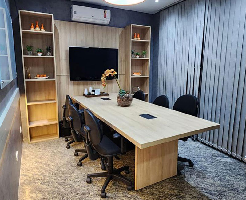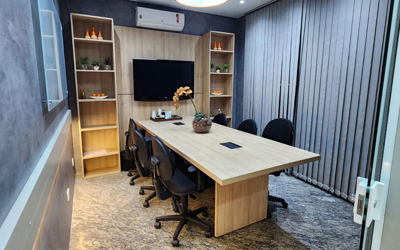 Ambientes equipados com videoconferência, climatização e todo suporte para suas reuniões.